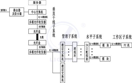系統(tǒng)完整,它包含了綜合布線的工作區(qū)子系統(tǒng)、水平干線子系統(tǒng)、管理區(qū)子系統(tǒng)、垂直干線子系統(tǒng)和設(shè)備間子系統(tǒng);
