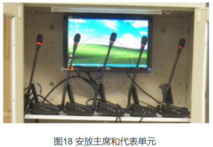 第四步,將移頻器放入設(shè)備柜中部棚板上,將主席單元,代表單元放入上部棚板,如圖18所示。