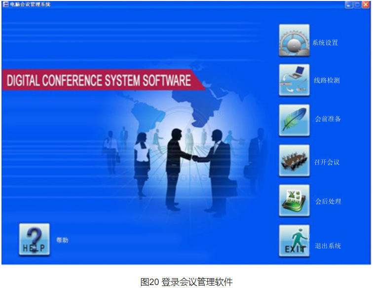 點(diǎn)擊桌面上的會(huì)議軟件圖標(biāo),輸入初始密碼1234,即可成功進(jìn)入會(huì)議管理軟件。如圖20所示。