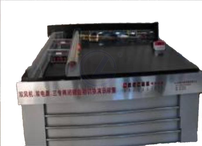 三專兩閉鎖演示裝置通過聲光機(jī)械控制技術(shù),顯示出了井下局部通風(fēng)機(jī)雙風(fēng)機(jī)、雙電源、自動(dòng)切換、三專二閉鎖系統(tǒng)的布置,運(yùn)行方式。