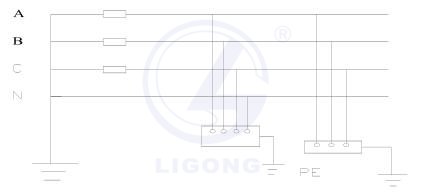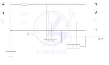 a) TN-S系統(tǒng):整個系統(tǒng)N線和PE線分開。(三相五線)