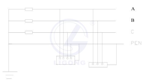 c) TN-C接地系統(tǒng): N線和PE線合二為一。