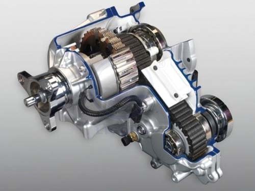 在多軸驅(qū)動的汽車上,為了將變速器輸出的動力分配到各驅(qū)動橋,一般裝有分動器。分動器的基本結(jié)構(gòu)也是一個齒輪傳動系統(tǒng),其輸入軸直接或通過萬向傳動裝置與變速器第二軸相連,而其輸出軸則有若干個,分別經(jīng)萬向傳動裝置與各驅(qū)動橋連接。