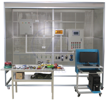 7) 該設(shè)備主要由模擬房、實(shí)訓(xùn)柜、裝配桌、電腦桌、模塊架、伺服電機(jī)模塊、步進(jìn)電機(jī)模塊、雙速電機(jī)模塊、交流異步電機(jī)模塊、傳感器模塊、電源電源箱模塊、電氣控制箱模塊、工具配件組成。