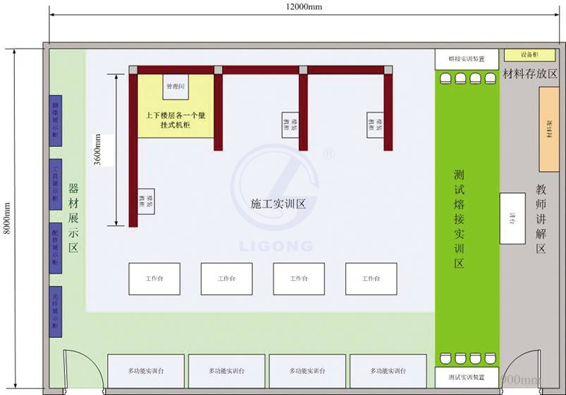 該區(qū)域實訓的內容是綜合布線系統(tǒng)工程中施工部分,主要實訓綜合布線工程中動手部分*多的各種施工操作,從而使學生掌握*基礎的施工技能。