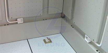 每座實訓單體墻有對稱的兩個墻面,每個墻面布有2道橫向和縱向凹槽,凹槽深度50mm,寬度100mm,下部橫向凹槽距離地面300mm。 鋼面板表面設有60X60毫米的安裝孔用來安裝各種線管、插座、線槽等,實訓過程只需要采用螺絲安裝保證無塵操作。模擬墻外部平整美觀,表面看不見墻體安裝螺絲或鉚釘。為保證產品絕對安全,不會產生傾覆的危險,綜合布線模擬墻*下層的安裝面板必須開孔與地面的地腳螺栓固定。