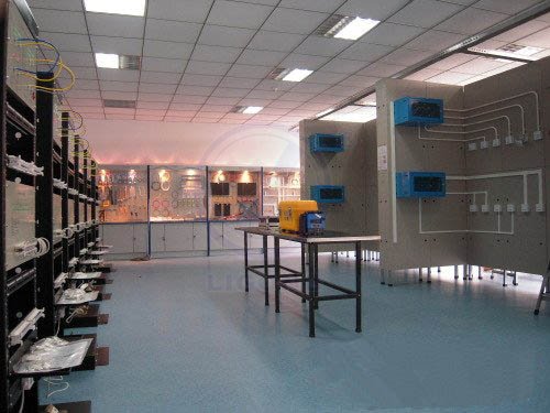 隨著網絡技術的發(fā)展,綜合布線技術日新月異,本公司研制的LG-B04型 綜合布線實訓室成套設備由12塊不同功能的金屬面板組成的模擬墻。綜合布線實訓室成套設備每座實訓模擬墻上進管孔、鋼面板、安裝孔、縱向凹槽、橫向凹槽等功能模塊。鋼面板表面有橫向、縱向網狀均勻布置的安裝孔,鋼板內側對應安裝孔位置焊有螺帽,安裝孔直徑5毫米,開孔間距為60毫米。綜合布線實訓室成套設備模擬墻正上方開有進管孔直徑20毫米,由橋架引20mmPVC管彎折操作后通過進管孔進入模擬墻,再由上部橫向凹槽穿出。