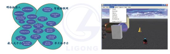 移動機(jī)器人的尋線跟蹤、探測、定位導(dǎo)航和自主避障等實驗 群體機(jī)器人的跟隨、編隊、協(xié)作和自組裝等實驗 多關(guān)節(jié)機(jī)器人的步態(tài)實驗 |