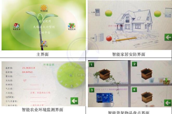 8、豐富的應用實訓系統(tǒng):提供傳感層數(shù)據(jù)分析、處理、顯示的嵌入式應用程序;提供多傳感器信息的融合、決策、傳輸管理程序;提供智能溫室、智能家居、智能貨架、遠程監(jiān)控等各種實訓項目的應用方案。支持PC與ARM架構(gòu)的二次開發(fā)與應用。