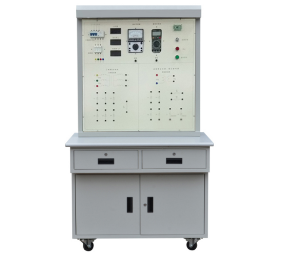 (1)實(shí)訓(xùn)臺(tái)主體部分采用全鋼結(jié)構(gòu),鋼板亞光噴塑,美觀耐用,臺(tái)面采用鋁塑板印制而成,整個(gè)實(shí)訓(xùn)臺(tái)由漏電保護(hù)開(kāi)關(guān)、熔斷器、開(kāi)關(guān)電源、數(shù)顯計(jì)時(shí)器、智能刷卡啟動(dòng)電路板、三相變壓器、單相變壓器、整流管、穩(wěn)壓管、交流接觸器、數(shù)字電壓表、數(shù)字電流表、指針萬(wàn)用表、數(shù)字萬(wàn)用表、照明日光燈、帶鎖開(kāi)關(guān)、按鈕開(kāi)關(guān)、負(fù)載電阻和安全接線柱等組成。