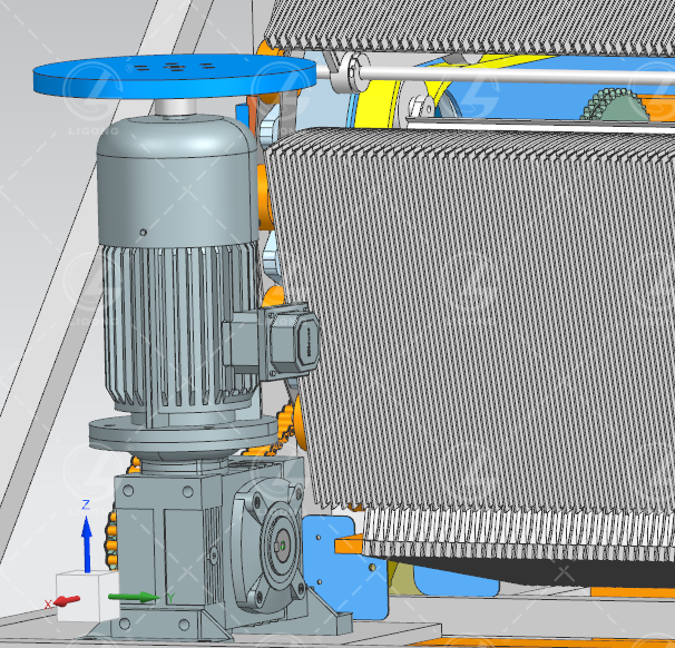 由交流電機(jī)、專用減速器、制動(dòng)器、手動(dòng)盤車和傳動(dòng)齒輪等組成。