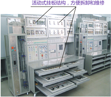 ★設(shè)備采用臺式結(jié)構(gòu),設(shè)置活動式抽屜電氣板,每層抽屜板均設(shè)置有公共接線板(總線型接線方式,總線連接點數(shù)必須達到120點以上),抽屜電氣板之間采用工業(yè)坦克鏈連接,公共抽屜板連線采用真實電梯多芯隨行電纜。