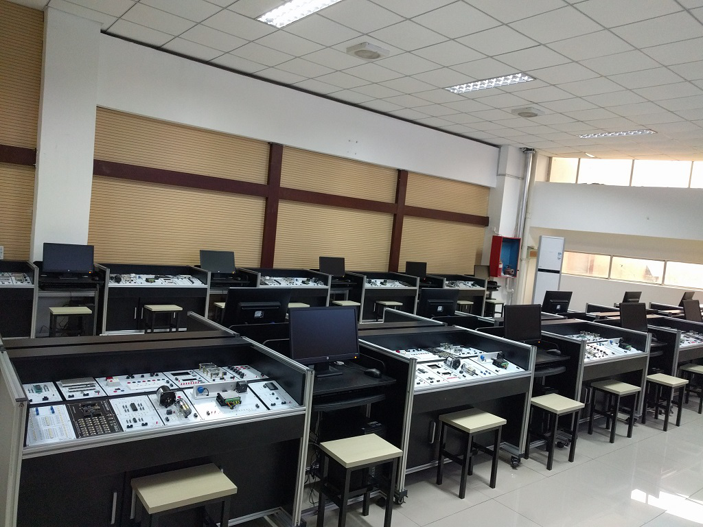 傳統(tǒng)的立式實驗桌,多采用立式屏結(jié)構(gòu)。這種結(jié)構(gòu)使得學(xué)生操作大部分實驗時需要站立,易于疲勞,視角向前不利于思考。同時由于立屏的高度較高,學(xué)生上實驗課時視線受遮擋,不便于老師講解。潛龍采用模塊平放結(jié)構(gòu),使得視線趨于自然向下,如同平時讀書寫字??拷脩魝?cè)又略帶傾斜,使得操作時更加方便。同時抬頭時視線使得毫無遮擋。可以方便地聽講,老師亦可觀察實驗情況。