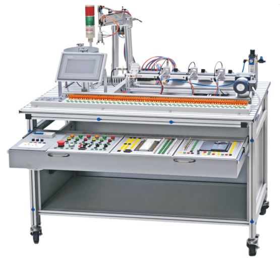 本設(shè)備主要包括實(shí)訓(xùn)臺架、典型的機(jī)電一體化設(shè)備的機(jī)械部件、PLC模塊、變頻器模塊、按鈕模塊、電源模塊、模擬生產(chǎn)設(shè)備實(shí)訓(xùn)模塊、接線端子排和各種傳感器等組成。整體結(jié)構(gòu)采用開放式和拆裝式,實(shí)訓(xùn)裝置用于機(jī)械部件組裝,可根據(jù)現(xiàn)有的機(jī)械部件組裝生產(chǎn)設(shè)備,也可添加機(jī)械部件組裝其他生產(chǎn)設(shè)備,使整個裝置能夠靈活的按教學(xué)或競賽要求組裝具有生產(chǎn)功能的機(jī)電一體化設(shè)備。