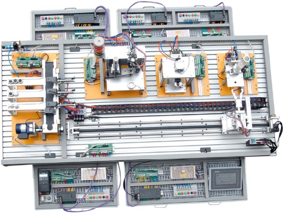 LGJD-CZ02型 自動生產(chǎn)線拆裝與調(diào)試實訓(xùn)裝置由由鋁合金導(dǎo)軌式實訓(xùn)臺、典型的機電一體化設(shè)備的機械部件、PLC模塊、變頻器模塊、按鈕模塊、電源模塊、模擬生產(chǎn)設(shè)備實訓(xùn)模塊、接線端子排和各種傳感器、計算機等組成。整體結(jié)構(gòu)采用開放式和拆裝式,實訓(xùn)裝置用于機械部件組裝,可根據(jù)現(xiàn)有的機械部件組裝生產(chǎn)設(shè)備,也可添加機械部件組裝其他生產(chǎn)設(shè)備,使整個裝置能夠靈活的按教學(xué)或競賽要求組裝具有生產(chǎn)功能的機電一體化設(shè)備。模塊采用標(biāo)準(zhǔn)結(jié)構(gòu)和抽屜式模塊放置架,互換性強;按具有生產(chǎn)性功能和整合學(xué)習(xí)功能的原則確定模塊內(nèi)容,使教學(xué)或競賽時可方便的選擇需要的模塊。設(shè)備需完全符合電工電子全國職業(yè)技能大賽所要求,同時還要求具有可拓展功能,可以組成更加大型的生產(chǎn)模擬系統(tǒng),以配合各個用戶學(xué)校不同層次,不同專業(yè)的教學(xué)及培訓(xùn)要求。
