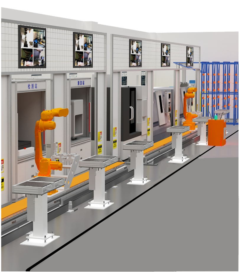數(shù)字化協(xié)同制造與設(shè)計中心、數(shù)控機床加工制造單元及其自動化改造、自動化清洗單元、,自動化檢測單元、自動化裝配單元、自動化立體倉儲單元、多軸移動工業(yè)機器人上下料單元、AGV運載單元、監(jiān)控單元、系統(tǒng)中央控制單元