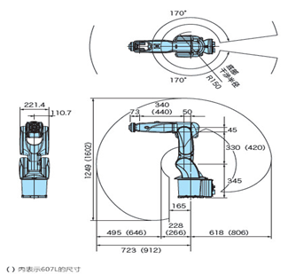 LGL-607/607L型 工業(yè)機器人輕量型機器人,外形小巧、重量輕,是*適合用于組裝小型單元機器人,能夠高速、高精度的完成上下料、分揀、裝配等各項工作。同時所有機器人線纜內置,能夠在狹小的空間靈活的進行作業(yè),安裝方式可以選擇地面安裝、掛裝、倒裝。LGL-607/607L型 工業(yè)機器人手腕額定負載5Kg,*大負載波6Kg,*大工作半徑LGL-607型*大工作半徑為720mm,LGL-607L型*大工作半徑為910MM。