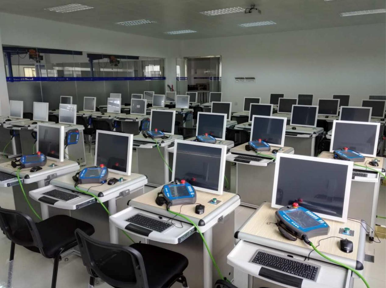LGH-LS01型 機器人理實一體化實訓(xùn)系統(tǒng)是針對機器人教學(xué)的一款產(chǎn)品,具有成本低,安全性高優(yōu)勢。該產(chǎn)品能夠通過示教器操作 PC 上的虛擬機器人進行運動控制,且運動過程中沒有噪音。當(dāng)教師從理論上講解之后,學(xué)生就可以動手操作機器人,能夠激發(fā)學(xué)生對機器人課堂學(xué)習(xí)的興趣,提高學(xué)生和老師之間的互動性。機器人理實一體化實訓(xùn)系統(tǒng)用真實的示教器和真實的控制器控制模擬軟件上的虛擬機器人,模仿真實的機器人運動。省去伺服驅(qū)動、減速器、電機、機器人本體,節(jié)省成本。對于教學(xué)產(chǎn)品來說,安全性是很重要的,由于沒有使用實際的機器人本體,所以不存在安全隱患。