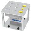 工作臺(tái)整體由兩個(gè)基礎(chǔ)臺(tái)拼接而成,更具空間靈活,拆卸方便等特點(diǎn)。臺(tái)面采用標(biāo)準(zhǔn)鋁型材,機(jī)器人 及功能模塊可根據(jù)需求改變布局位置,所有功能模塊采用手?jǐn)Q螺栓方式固定,可實(shí)現(xiàn)無(wú)工具快速拆裝與更 換。每個(gè)模塊電氣部分配置了獨(dú)立的電氣接線盒和快速航插,可實(shí)現(xiàn)模塊整體機(jī)械和電氣快速安裝部署, 還可根據(jù)需求更換或添加功能模塊進(jìn)行功能擴(kuò)展。