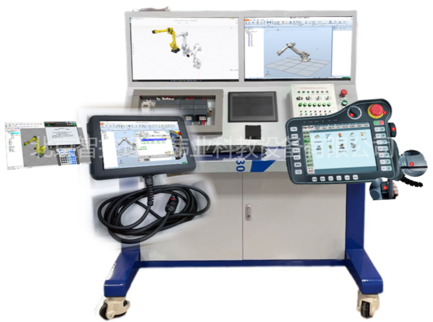 (5)支持虛擬六自由度工業(yè)機(jī)器人應(yīng)用環(huán)境,真實(shí)手持示教器操作。
