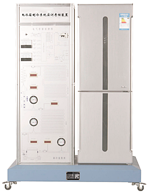 3.實訓裝置采用柜式結構,鋁合金型材框架,由家用雙門智能電冰箱、測量儀表、設故系統(tǒng)、保護系統(tǒng)以及直冷式電冰箱制冷系統(tǒng)流程圖等組成。