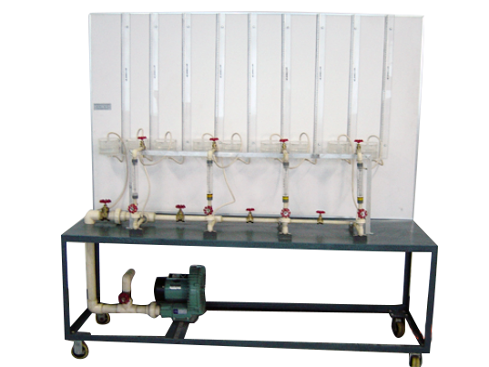 主要配置:小型調(diào)壓器;調(diào)節(jié)閥;流量計(jì);測(cè)壓管;多節(jié)點(diǎn)模擬管網(wǎng);漩渦氣泵等。