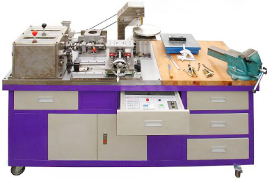 本裝置主要由實訓(xùn)臺、動力源、機(jī)械裝調(diào)對象(機(jī)械傳動機(jī)構(gòu)、多級變速箱、二維工作臺、間歇回轉(zhuǎn)工作臺、牙嵌式離合器機(jī)構(gòu)、沖床機(jī)構(gòu)、送料機(jī)構(gòu)等)、鉗工常用工具、量具等部分組成。