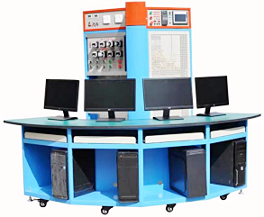 3、實訓(xùn)電源屏:采用人字形6面設(shè)計,面板裝有PLC主機(jī)、變頻器、觸摸屏,交流電源輸出,低壓直流電源,所有輸出輸入端口均采用安全型雙圈插座引出。鋼制結(jié)構(gòu),面板采用彩色描繪。每組電源都具有漏電保護(hù)、短路保護(hù)功能。電源控制屏裝有可定位旋轉(zhuǎn)機(jī)構(gòu),根據(jù)不同的實訓(xùn)要求可以旋轉(zhuǎn)至對應(yīng)的實操工作面,旋轉(zhuǎn)機(jī)構(gòu)要牢固、安全、可靠。