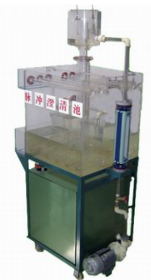 有機玻璃脈沖澄清池、進水管、放空管、水泵、配水箱、轉(zhuǎn)子流量計、連接管道和球閥、電控箱、不銹鋼臺架。