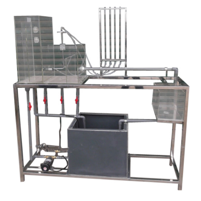 水泵、蓄水箱、畢托管、測(cè)壓計(jì)、管嘴射流裝置、恒壓水箱、計(jì)量水箱、刻度標(biāo)尺、秒表、自循環(huán)系統(tǒng)、不銹鋼框架。