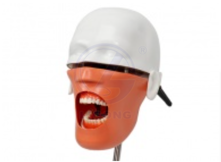 LG-Y10023-2 標(biāo)準(zhǔn)型頭模由頭模、金屬支撐桿組成,可使頭模固定在牙科診療臺(tái)上,頭模后下方有調(diào)節(jié)手柄可任意調(diào)節(jié)和固定頭模位置,頭模后上方調(diào)節(jié)手柄可使頭模上下部分分離,口腔安裝仿真標(biāo)準(zhǔn)全口牙模。