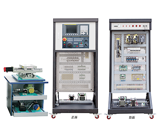 2、機(jī)床實(shí)訓(xùn)柜采用鐵質(zhì)亞光密紋噴塑結(jié)構(gòu),正面裝有數(shù)控系統(tǒng)和操作面板,背面為機(jī)床電氣柜,柜內(nèi)器件布局與實(shí)際機(jī)床廠的模式一致。電氣柜內(nèi)的電氣安裝板為不銹鋼網(wǎng)孔板,上面裝有變頻器、伺服驅(qū)動器、交流接觸器、繼電器、保險(xiǎn)絲座、斷路器、開關(guān)電源、接線端子排和走線槽等;電氣柜底部還設(shè)有變壓器和接地端子等。